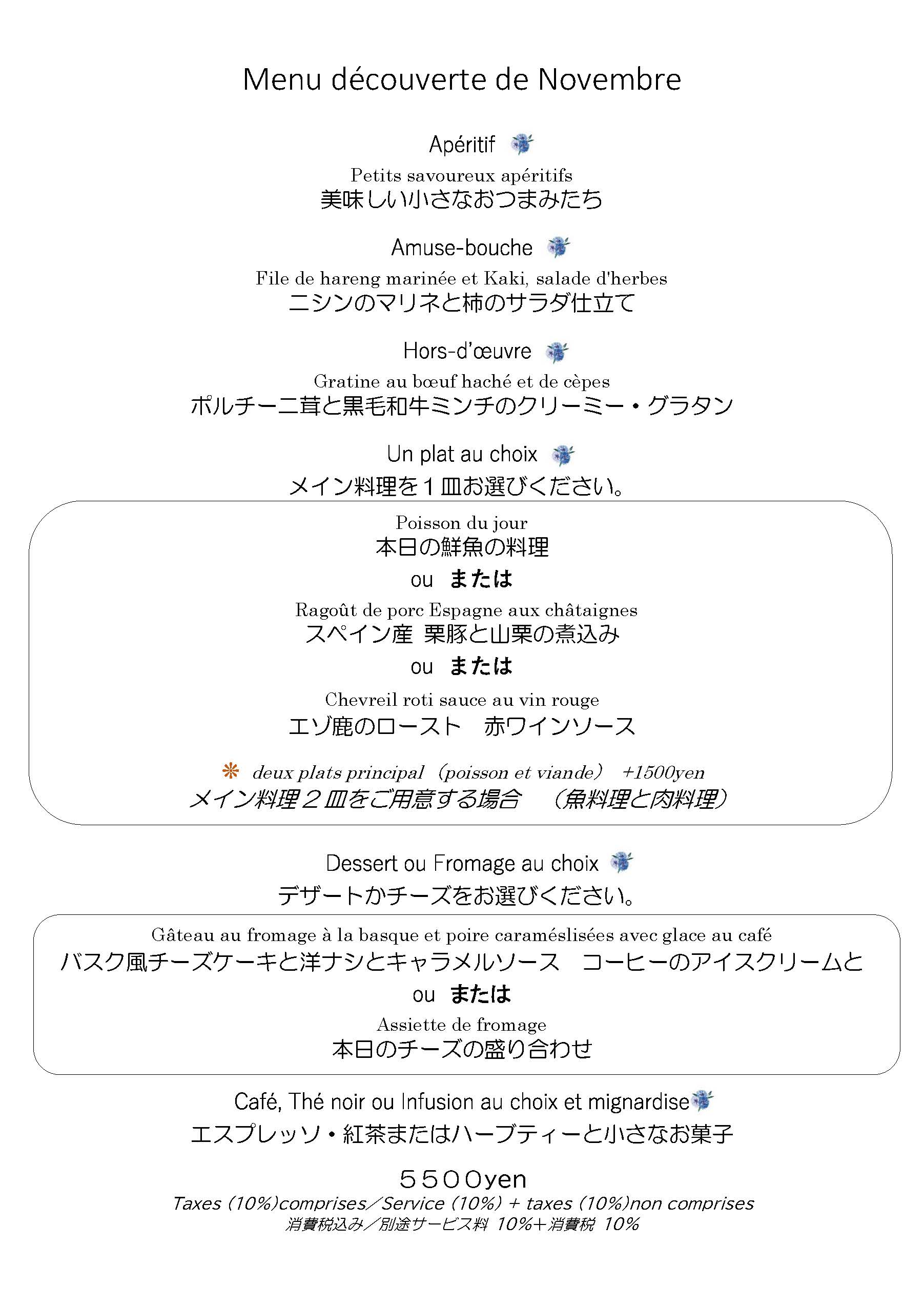 - 11月~12月18日までのディナーメニュー