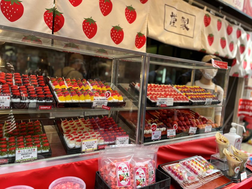 また、ひと粒ひと粒にデコレーションした「いちご団子」や「フレーバー団子」のお店が目を引きました 😎