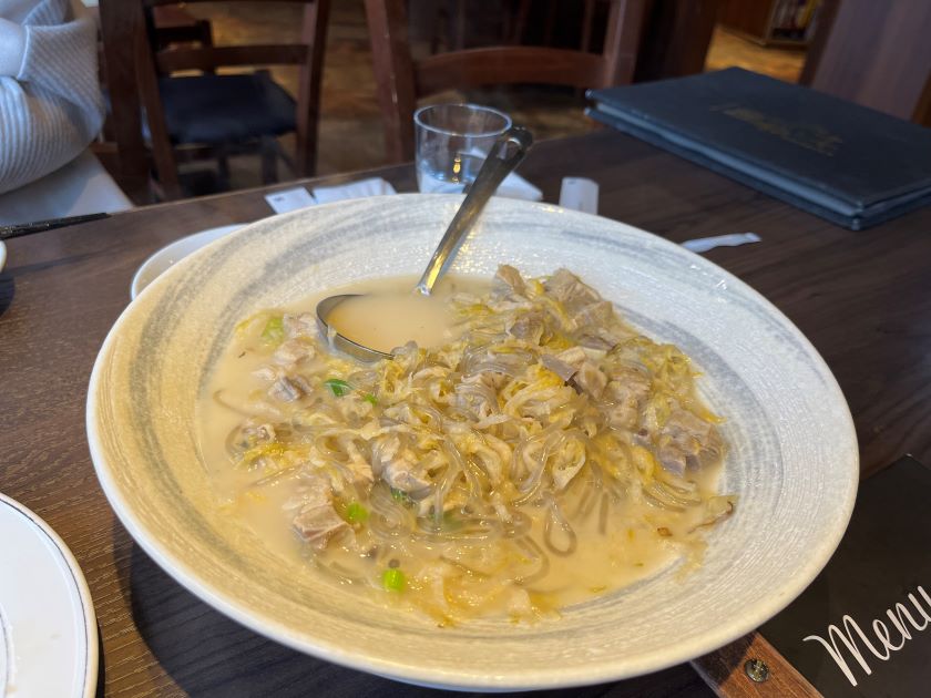 ―白菜の漬物とスペアリブを細かくしたものを入れた春雨入りスープ