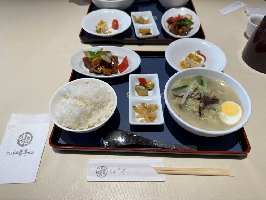 お昼は 緑豆の春雨を使った紅蘭亭さんの太平燕(タイピーエン)という 熊本市民のソウルフード(給食に出たそう)が付いた定食をいただきました